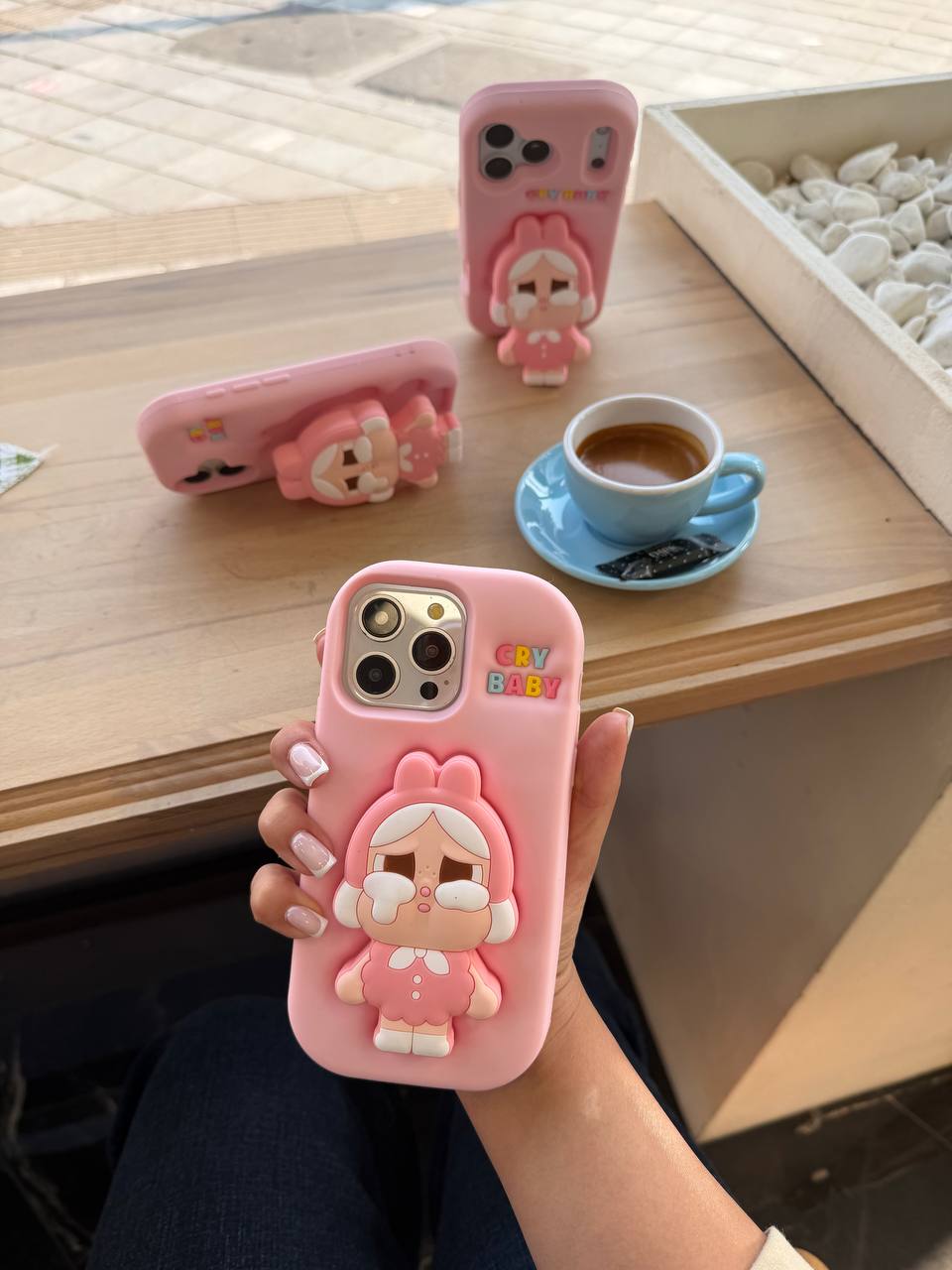 قاب سیلیکونی اورجینال پاکنی طرح کرای بیبی ضد حساسیت، کاملا پاکنی و قابل شستشو، همراه با پاپ سوکت استند شو